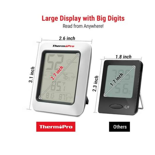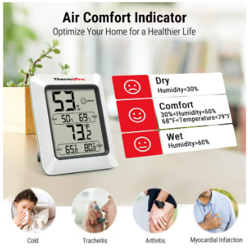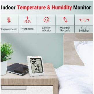 جهاز قياس الحرارة و الرطوبة يوفّر لك راحة أكبر داخل المنزل بفضل شاشة سهلة القراءة مع دقة عالية يسجّل أعلى وأقل درجات الحرارة والرطوبة لمتابعة التغيرات، مما يساعدك على الحفاظ على بيئة صحية