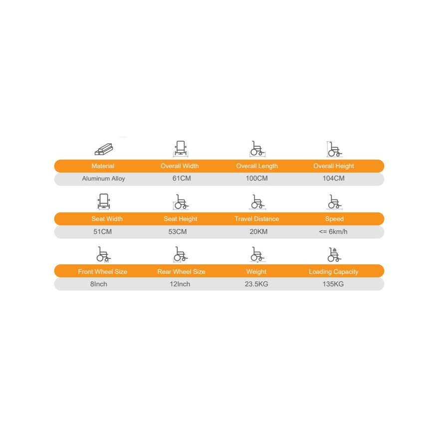 كرسي متحرك كهربائي من اتش تي خفيف الوزن، صُمم ليمنح المستخدم حرية الحركة والراحة التامة في التنقل داخل وخارج المنزل مما يجعله خيارًا مثاليًا لكبار السن وذوي الاحتياجات الخاصة
