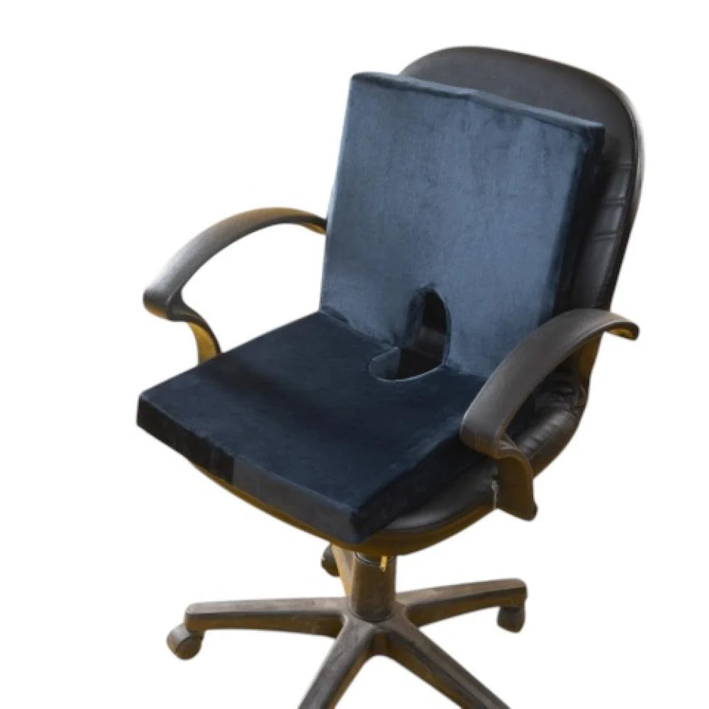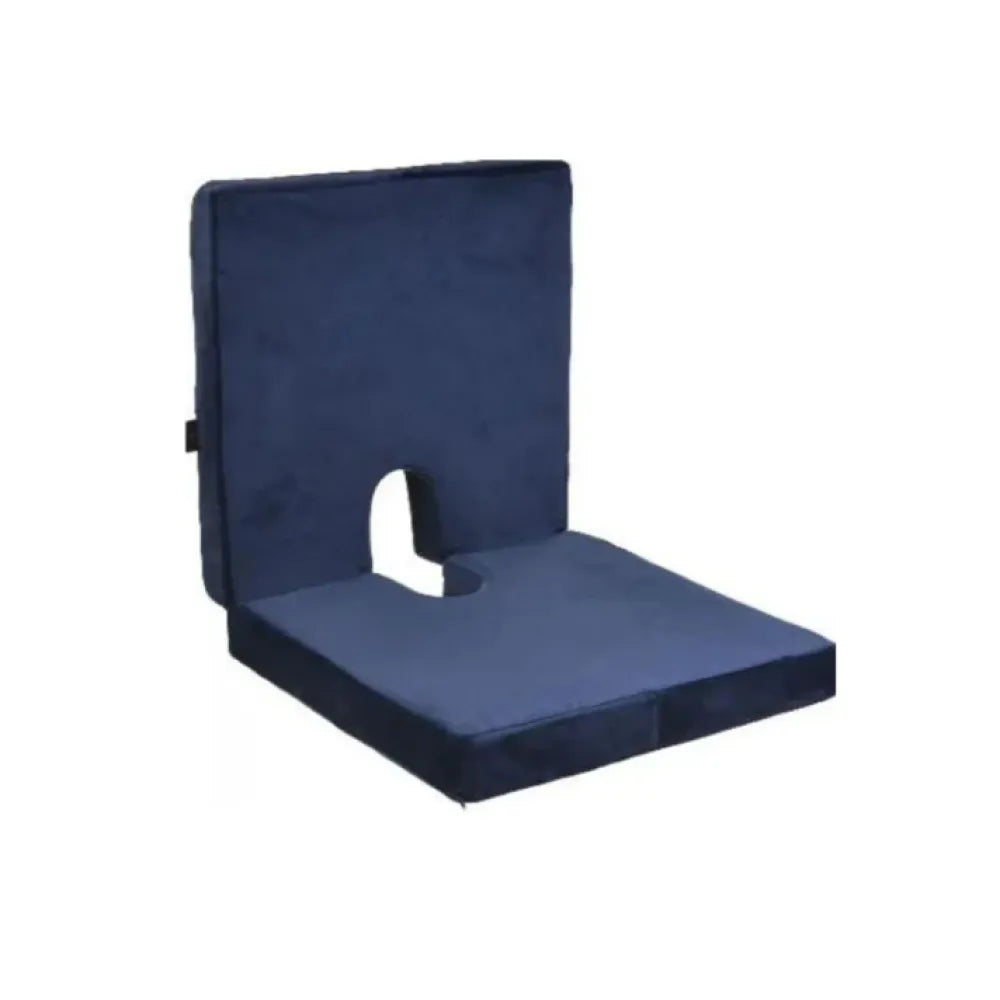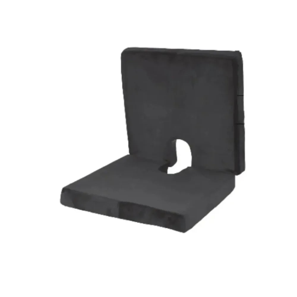 مقعد ومسند طبي من اتش تي، مصنوع من ميموري فوم ألماني عالي الجودة، مع غطاء خارجي من القطيفة الناعمة قابل للغسيل، يقوم بتخفيف الضغط على الحوض ويوفر الدعم اللازم للعمود الفقري