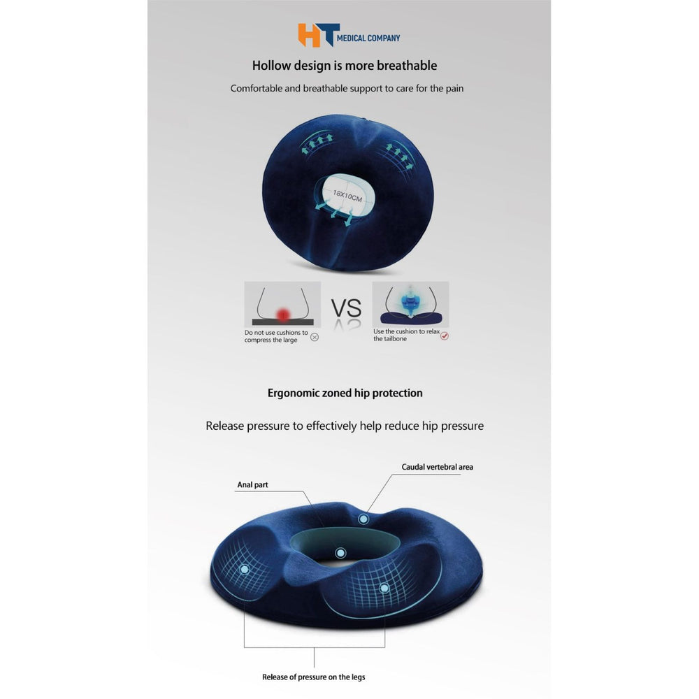 مقعد بواسير حديث من اتش تي ، المصمم خصيصًا لتخفيف الضغط عن منطقة العجان وتخفيف آلام البواسير بشكل فعّال. يجمع المقعد بين التصميم الدائري الحديث والخامات الطبية عالية الجودة التي توفر دعمًا مريحًا يساعدك على الجلوس لفترات طويلة دون الشعور بالألم أو الانزعاج.