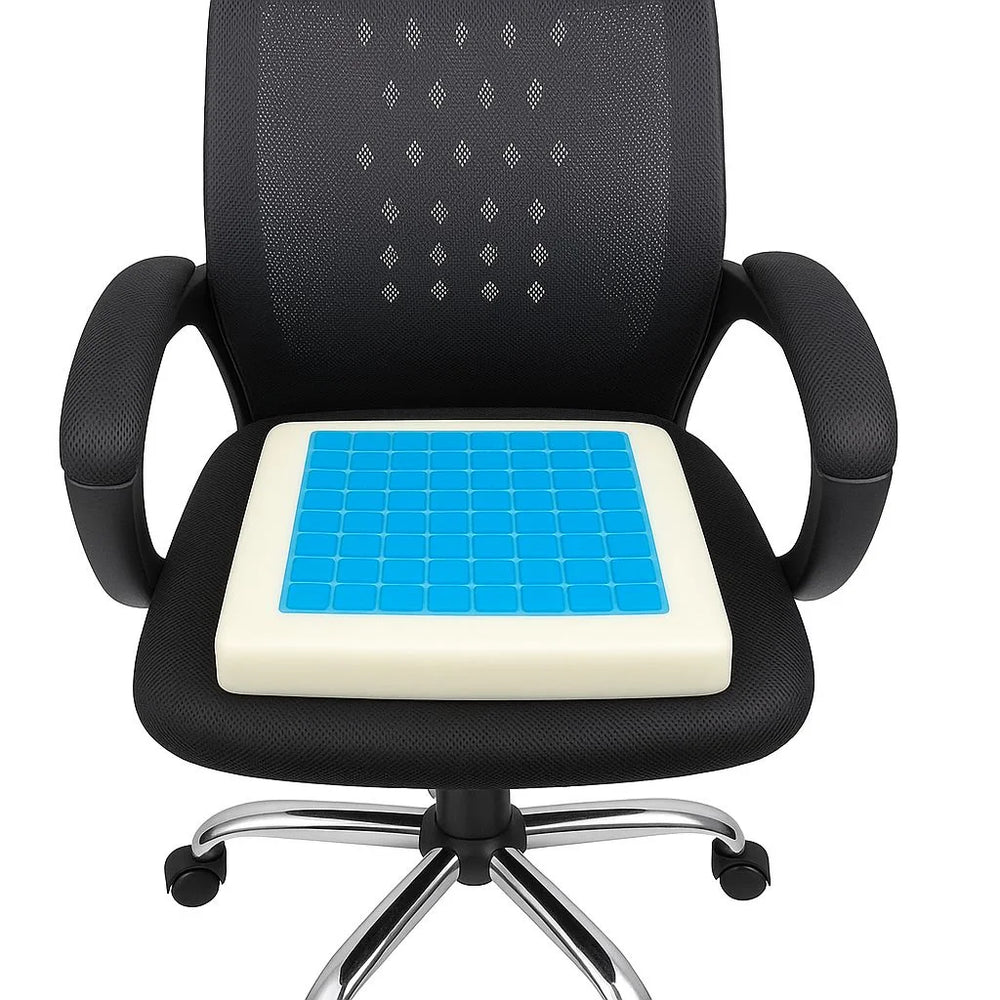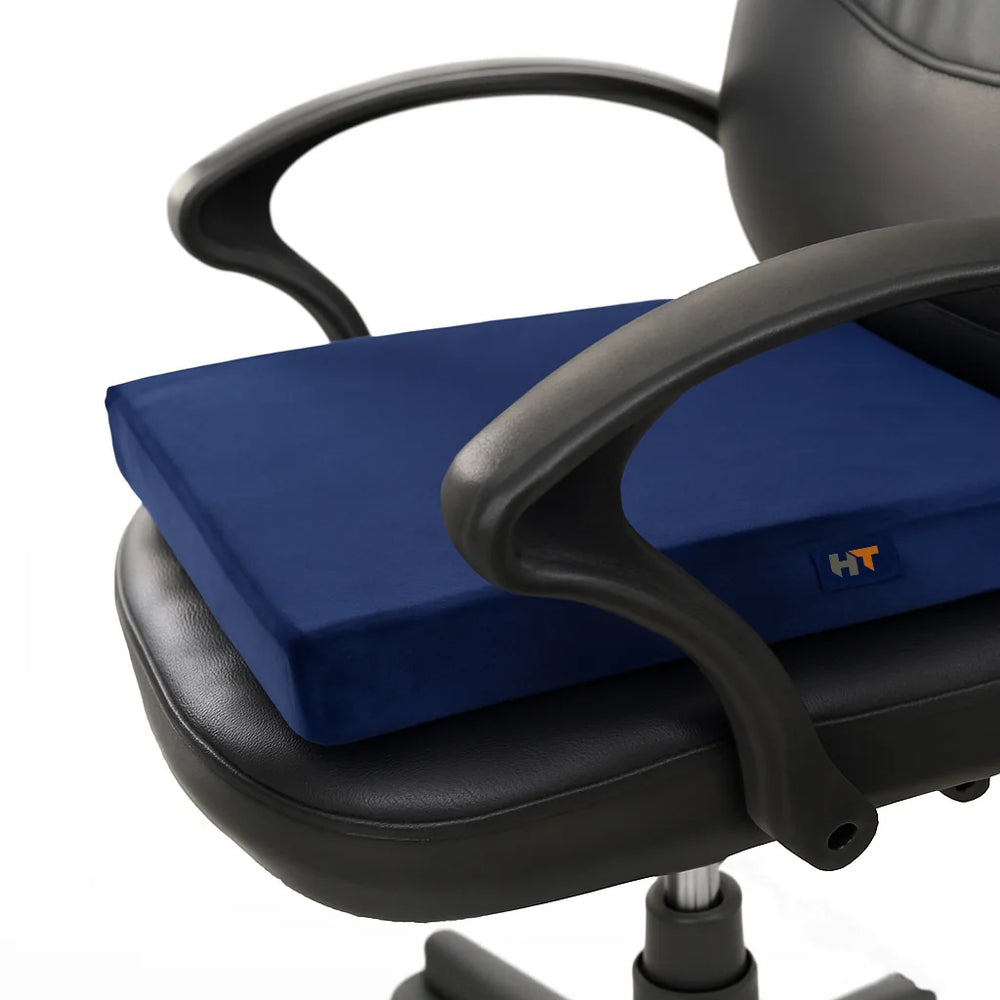 مقعد مربع طبي مريح من اتش تي، الحل المثالي للجلوس لفترات طويلة بدون ألم أو إجهاد، حيث يجمع بين دعم الميموري فوم وراحة الجل المبرد مع حماية مضادة للبكتيريا
