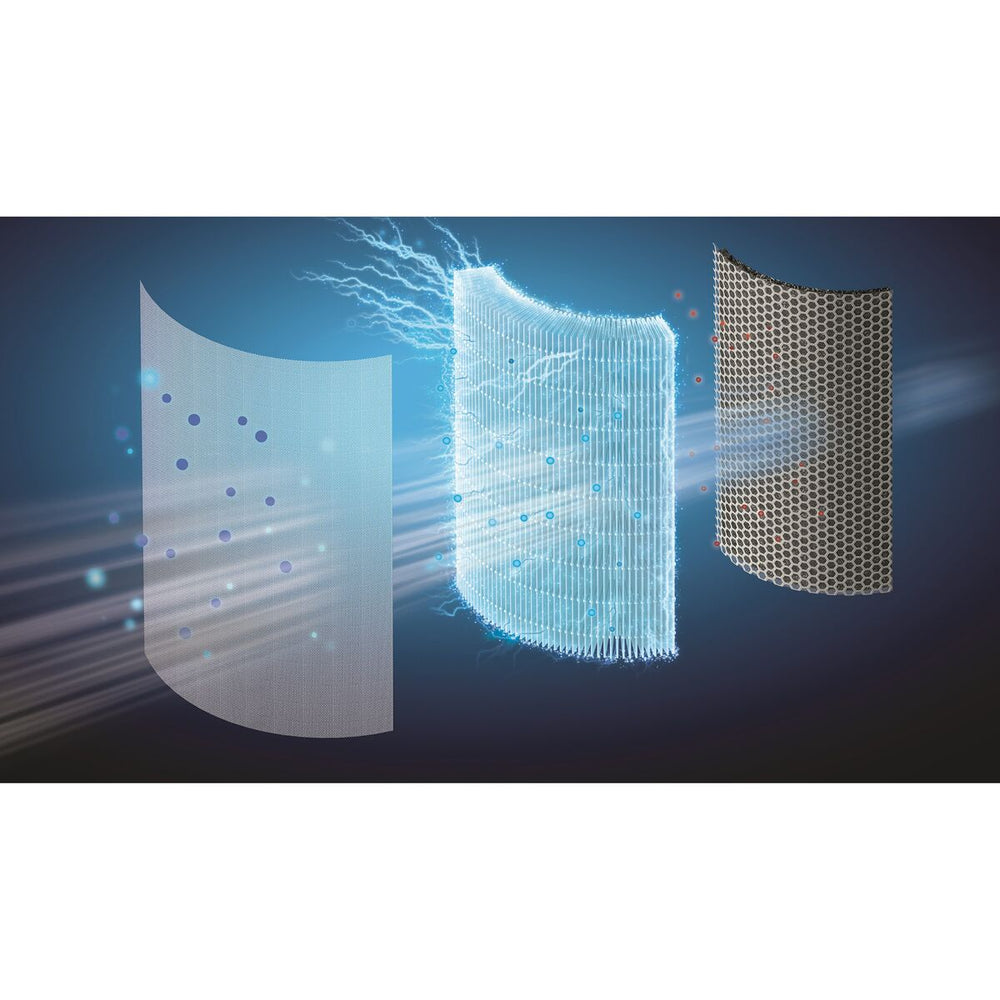 فلتر نانو بروتيكت من فيلبيس، فلتر أصلي لأجهزة تنقية الهواء من السلسلتين 1000 و2000i، فلتر HEPA NanoProtect من نوع 3 في 1، وطبقة كربون نشط وفلتر أولي للحماية من التلوث وحبوب اللقاح والغبار ومسببات الحساسية تجاه الحيوانات الأليفة والفيروسات.