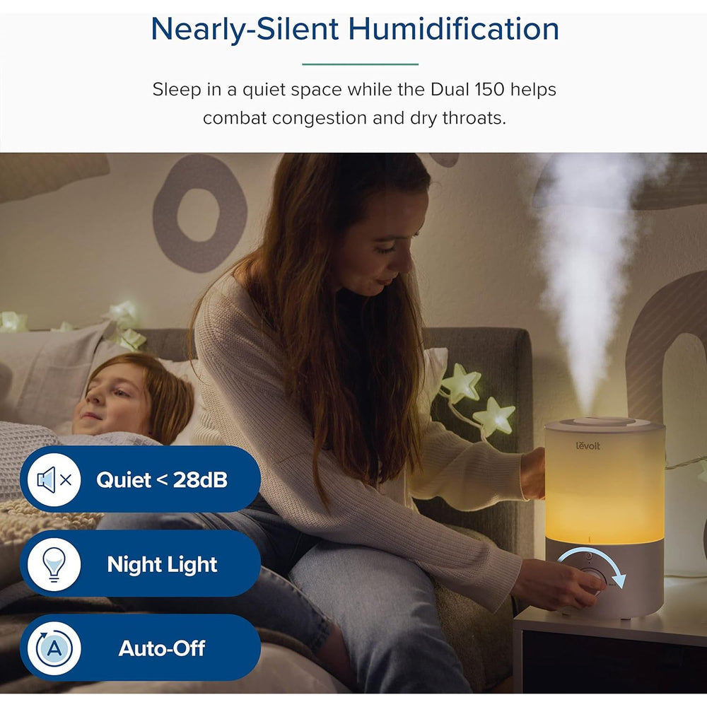 مرطب الهواء من ليفويت، احصل على هواء منعش وصحي في منزلك، الجهاز مصمم ليمنحك ترطيبًا مثاليًا على مدار اليوم. يتميز بخزان مياه كبير بسعة 3 لتر يكفي للتشغيل حتى 25 ساعة متواصلة، مما يجعله مناسبًا لغرف النوم، المكاتب، وغرف الأطفال