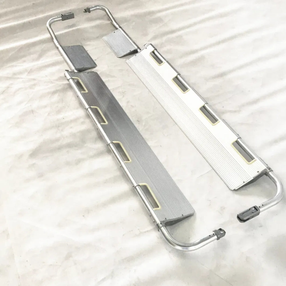 نقالة سكوب مصنوعة من الألمنيوم خفيفة الوزن، يمكن فصلها بسهولة لتسهيل نقل المصابين، مزودة بآلية لتعديل الطول لتناسب مختلف الحالات الطارئة